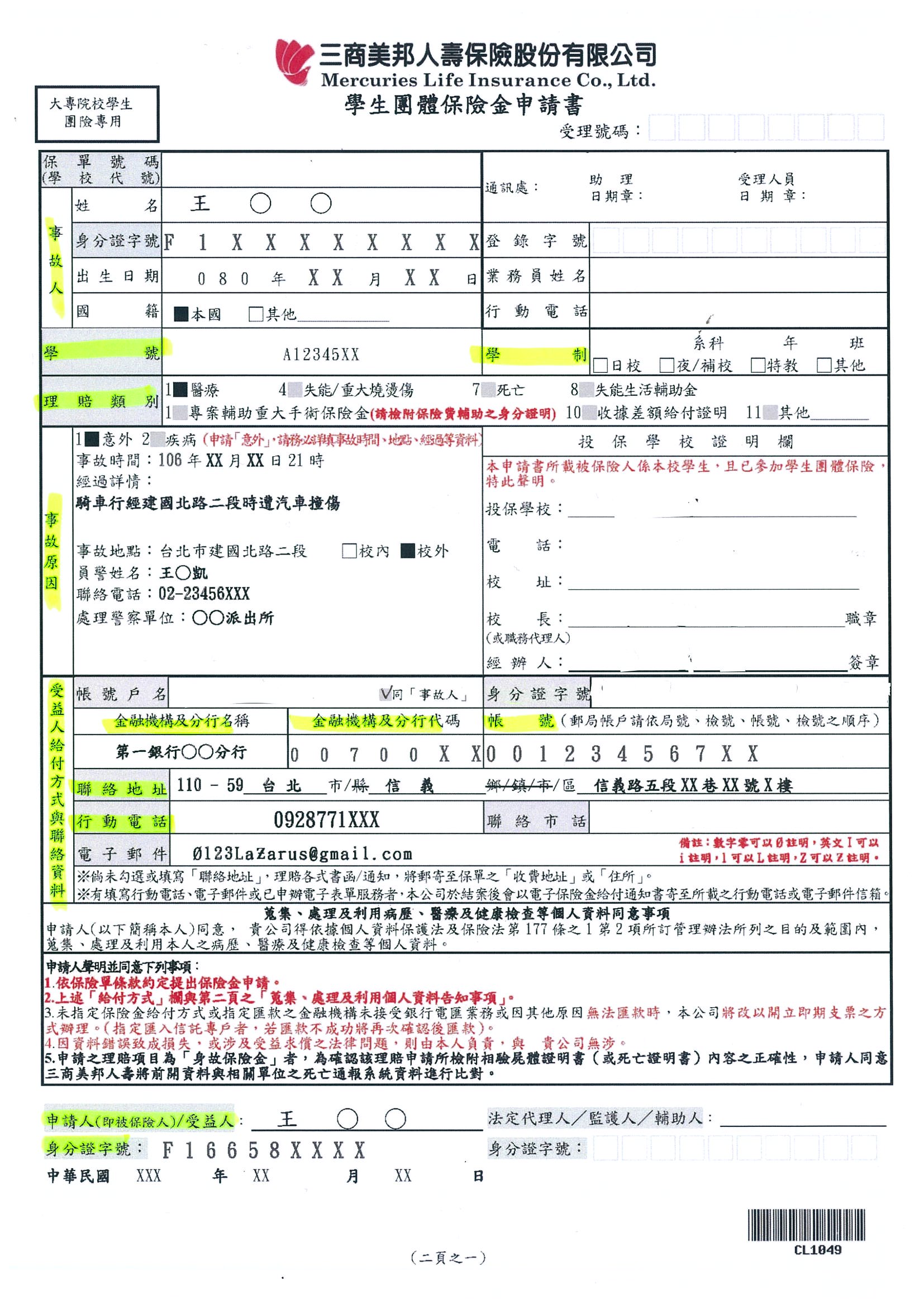 理賠申請書_書寫範例
